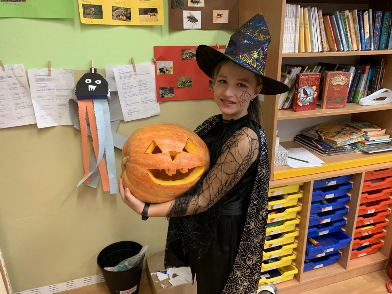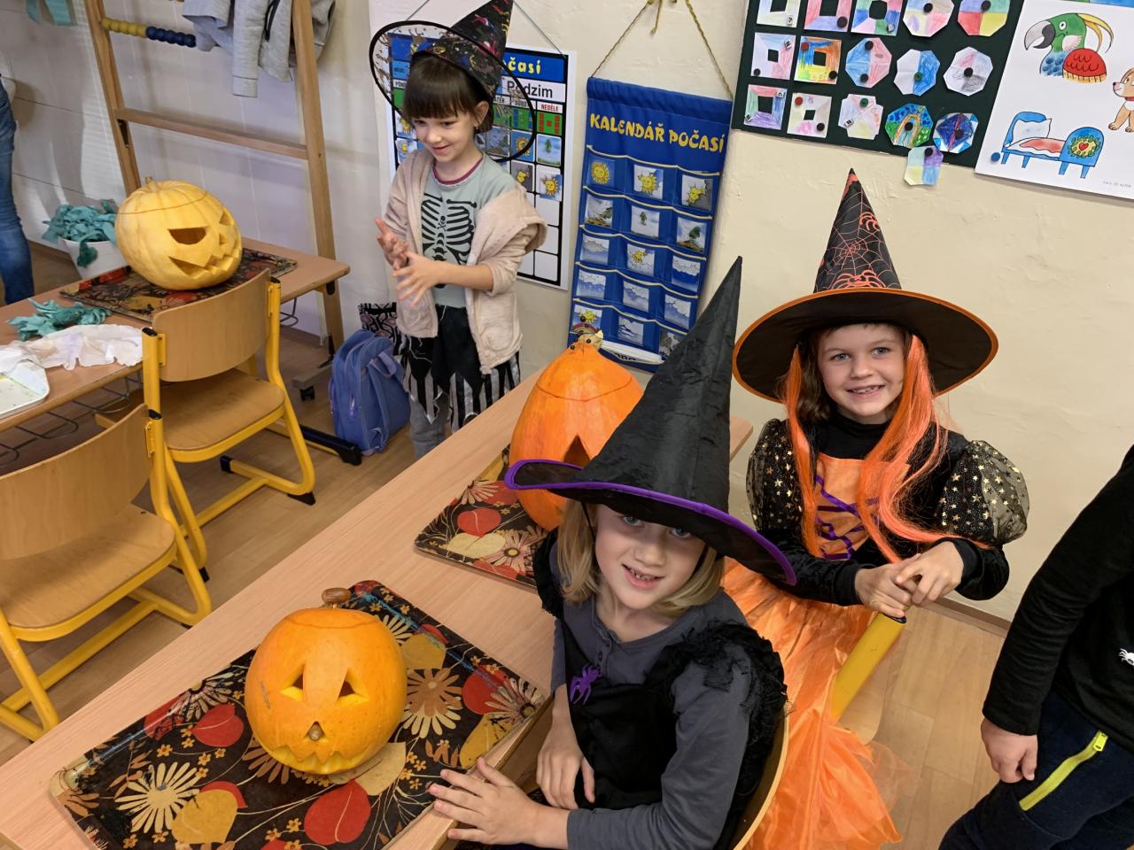 Děkujeme všem dospělákům za pomoc s dlabáním dýní a malým nedospělákům za podporu sourozenců. Konečně jste mohli i Vy zažít příjemnou atmosféru, která ve škole panuje a která je pouze fotkami nepřenositelná. Věřte, že i navazující program, který si pro všechny mladší spolužáky připravili žáci 5. ročníku, byl báječný. Nádherný den zakončila oblíbená večerní akce pořádaná Spolkem KRAS – Průvod broučků. A že jich letos zase bylo!!!