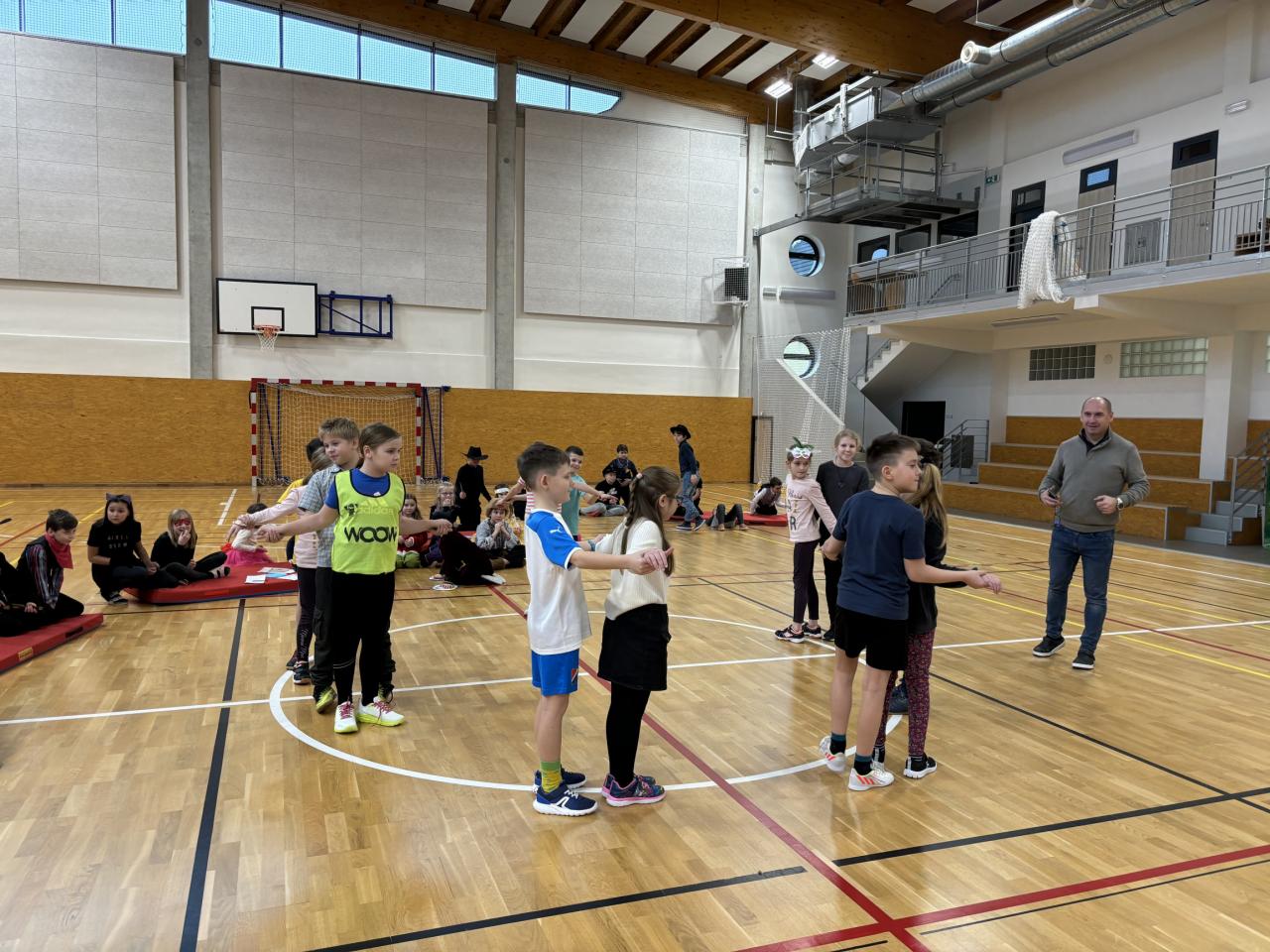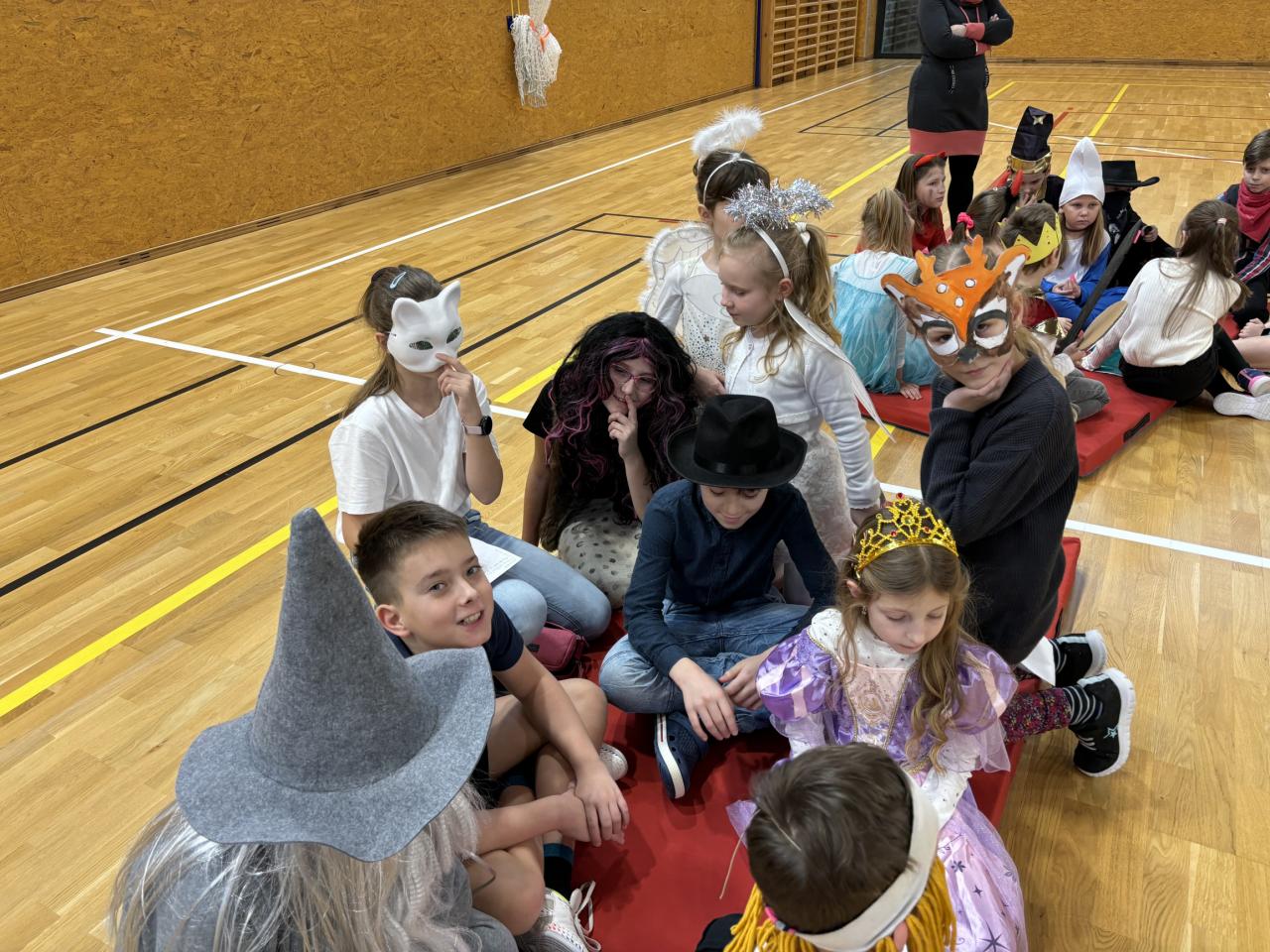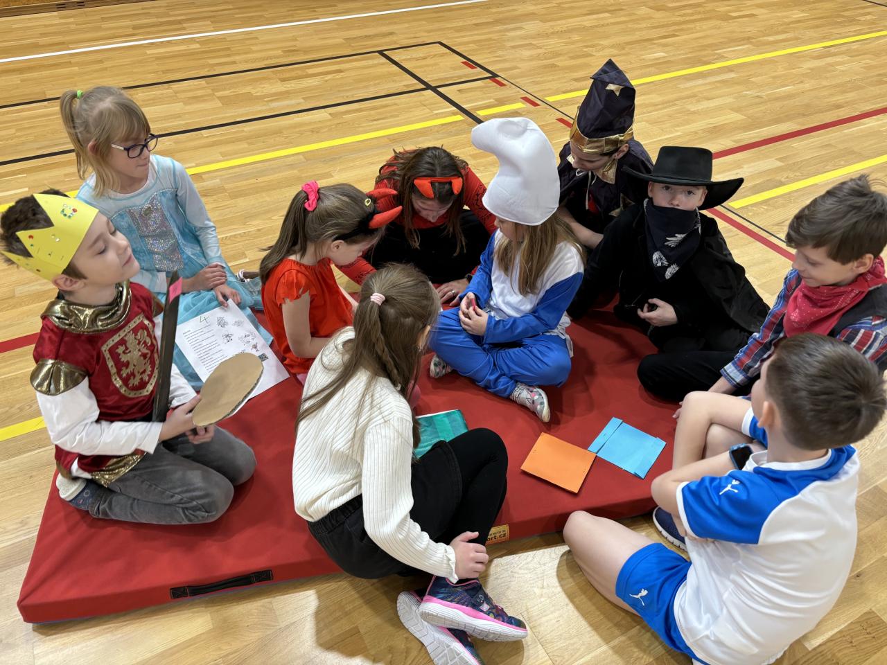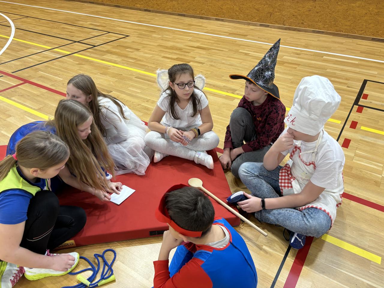 Program byl bohatý! Nejprve se nám prvňáčci představili v několika veršovaných pohádkách: 1. pohádka, 2. pohádka, 3. pohádka (Schválně! Poznáte je? Kliknutím na podtržená slova, spustíte videa.). Následně ve smíšených týmech děti poznávaly pohádky podle hudební znělky, úryvku nebo také doplňovaly informace k hlavním postavám. Nechyběl ani pohyb! Nejprve každá třída předvedla, jak zvládla nacvičit tanec mazurku, následně si všechny přítomné pohádkové bytosti společně zatancovaly. Návštěva Říše pohádek nás stmelila a hlavně potěšila! Bohužel zazvonil zvonec (školní zvonek) a naší pohádky byl konec...