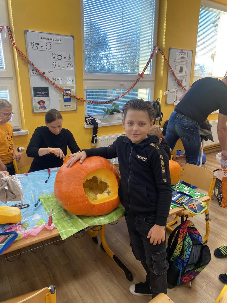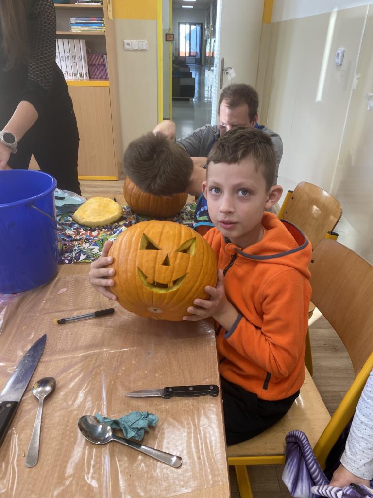 Dnešní dopoledne bylo skvělé! Nejdříve jsme s rodiči vydlabávali dýně a pak si pro nás páťáci připravili dýňový program. Plnili jsme zábavné úkoly a dozvěděli jsme se plno nových informaci o původu dýně.