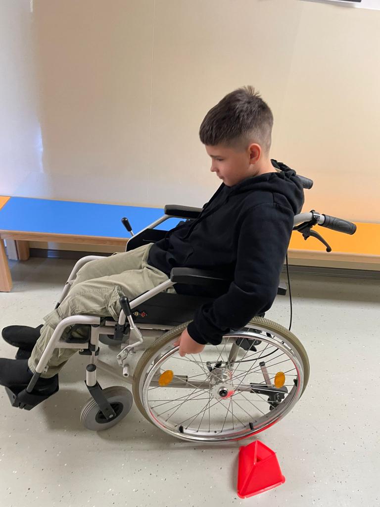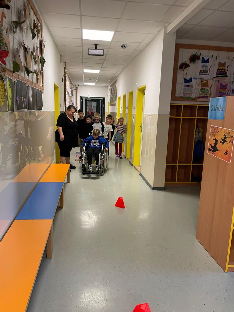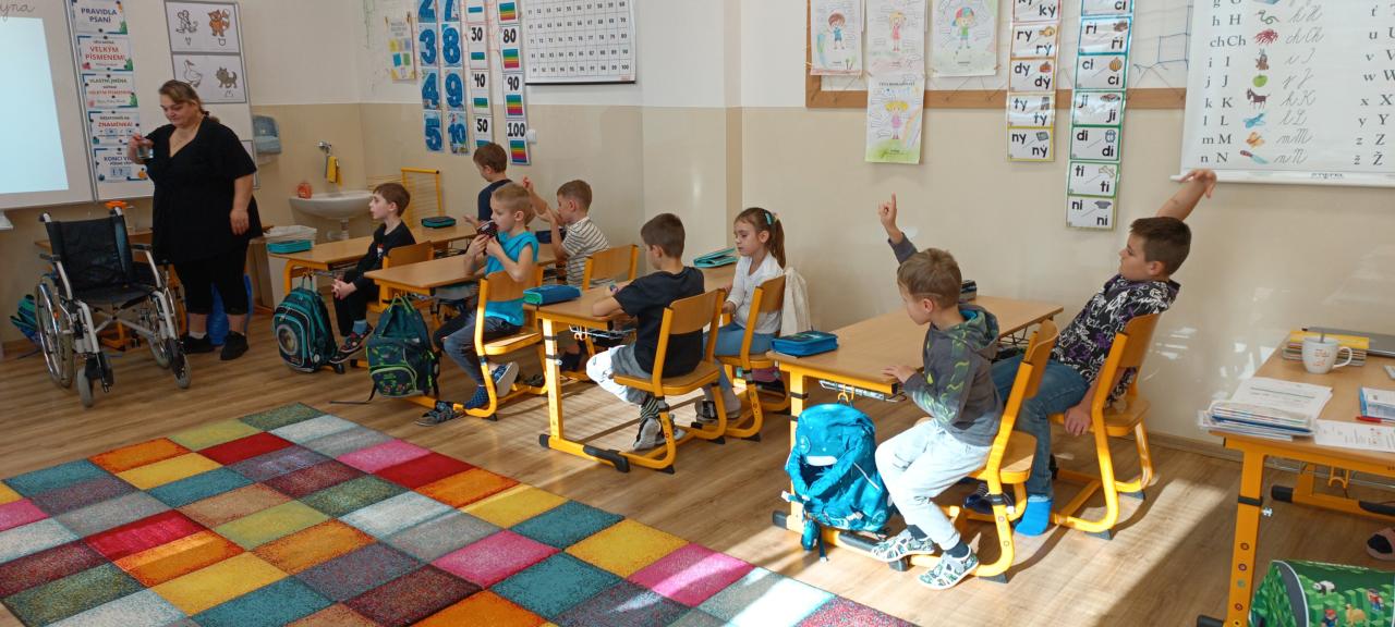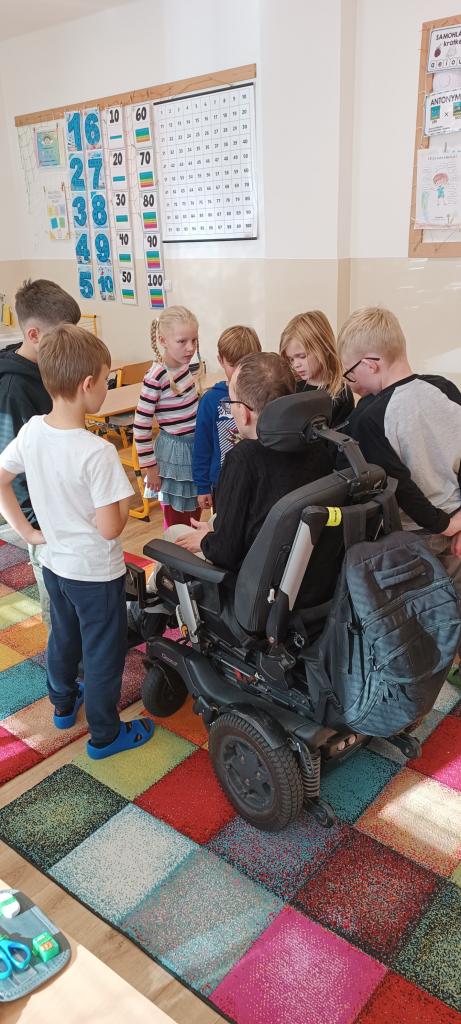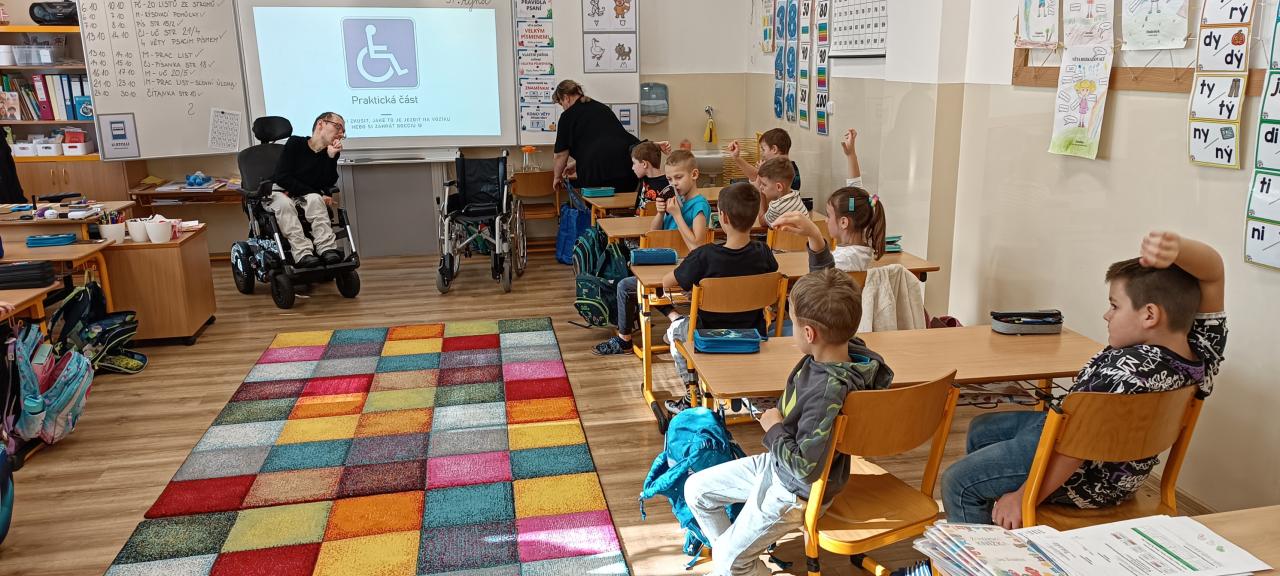 Dnes jsme měli zajímavou dvouhodinovou besedu s panem Adamem Kratochvílem, který trpí svalovou atrofií. Povídal nám o své nemoci a dokonce nám dovolil vyzkoušet si jízdu na mechanickém vozíku. Byla to pro nás velmi poučná a inspirativní zkušenost.