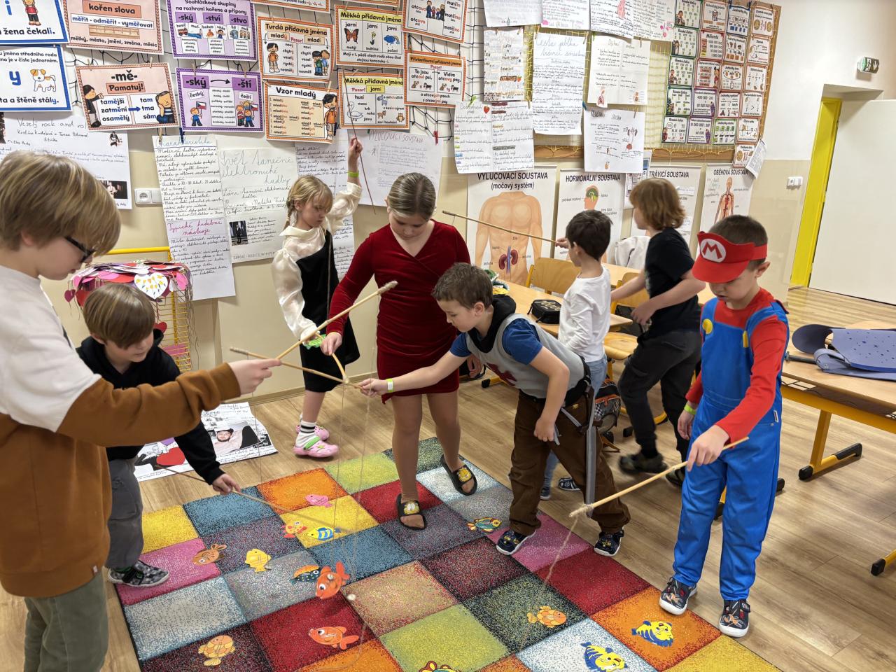 Pohádkové školní dopoledne si připravili třeťáci se svou paní učitelkou. Družstva složená ze žáků různých tříd plnila úkoly na stanovištích a starší spolužáci pomáhali mladším. Tato spolupráce se nám už daří velmi dobře! Navíc jsme začali pohádkou v podání členů divadelního kroužku! Báječná akce!